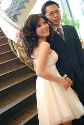 這次在造型上故意去踩了幾個禮俗上的大禁忌:婚紗不能穿短的露出腳,不能穿兩次白紗(我技巧性的穿上類白紗),鞋子不能露出腳趾頭之類的相關議題,也好險我婆婆完全沒在管婚禮的東西,婚禮之後婆婆跟其他親戚也都沒說什麼,一切順利過關。