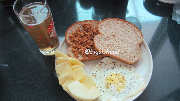 配著我自己做的肉鬆蛋全麥土司加蘋果,很營養健康吧!