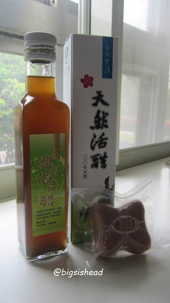 最近收到一份試吃及試用產品,有一塊來自南橫莫拉克災區寶來溫泉不老溫泉皂及一瓶那瑪夏鄉的橄欖醋。