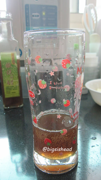從我打開到拍這張照片只經過兩天:8/13-8/15,我一個人就已經喝到快見底了。而且我超愛醋喝起來有燒喉嚨的感覺。