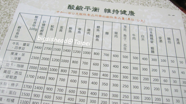 倒是這張酸鹼平衡表格一定要來強調一下:此圖表的意思是表格上方的酸性食物每100公克需要多少公克的鹼性食物來中和,蔬菜水果都可以中和,但是,最符合經濟效益的是梅乾及梅肉精,只需要少少的量就可以中和大大的酸性物質,既然都要吃,何不多吃點對身體有益又不難吃的東西呢?