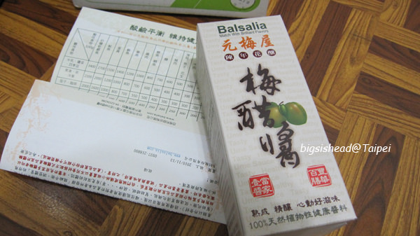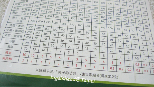 大家都知道身體酸性物質過多,體質酸性化之後,新陳代謝機能會降低,身體容易出狀況,而梅子是這狀況的救星。產品包裝附有梅子的功效說明,這些資料坊間滿滿是,信者恆信不信者恆信,我就不多花篇幅來描述啦!