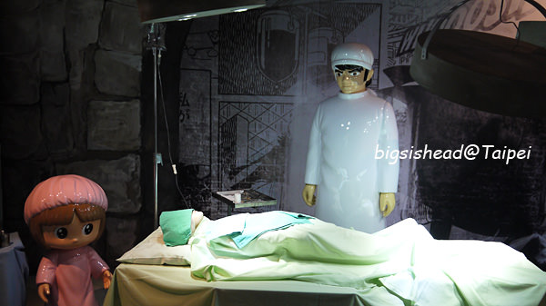 整場展覽我覺得印象最深刻的區域是手稿區(手稿區不能拍照),手稿雖然都有放大,但是有一些擺得太高,即便我抬頭都看不太到,只能放棄;而手稿原稿全部都是日文,我這個日文幼幼班也是有看沒有懂;手稿有一些有中文版的翻譯,但是翻譯竟然是我們一般漫畫書大小的1/5,對白的字小的跟螞蟻一樣,我覺得這一區很有意思,但是傷神傷眼睛呀!而我最喜歡的區域是漫畫情境模擬,因為這區呈現小金剛誕生的現況、城堡的虛幻世界及怪醫黑傑克的實驗室等等。