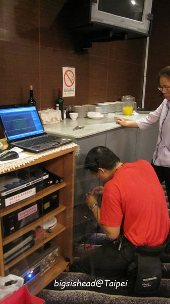 首先是在做新人愛情MV測試的時候,發現音源線有問題,聲音時好時壞,一看就知道是接觸不良,我們發現趕緊通知餐廳的主管,找來維修人員修理,基本上應該修了有一個小時吧!途中維修人員還衝到樓下家樂福買新的音源線來換,餐廳都沒有預備的喔!一整個令我傻眼。