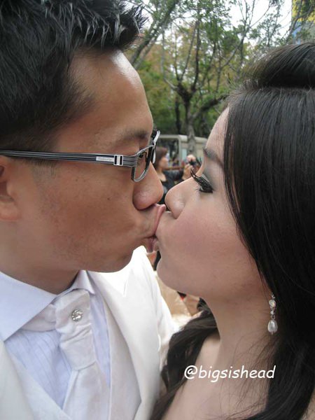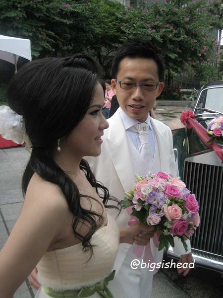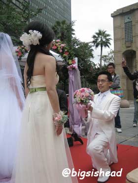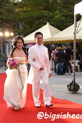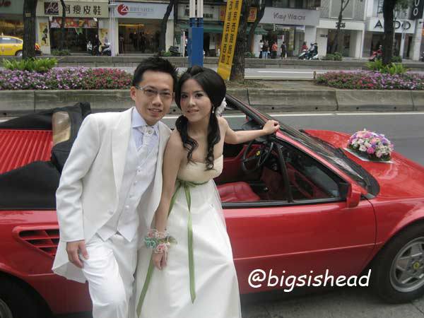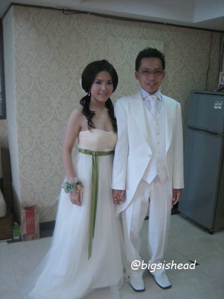 老潘穿著上次拍婚紗照的燕尾服白西裝,是我的白馬王子~~~我還是要強調,貴婦名媛風真的很像香菇頭或者水母….