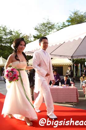 走在我後面的那位新娘衣服很特別,相較之下,我的真是超普通。
