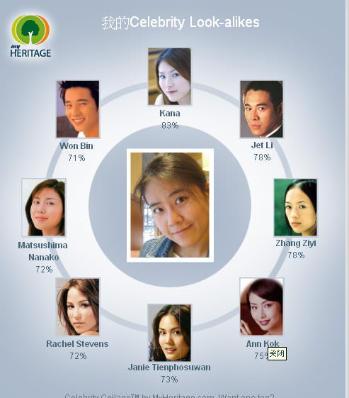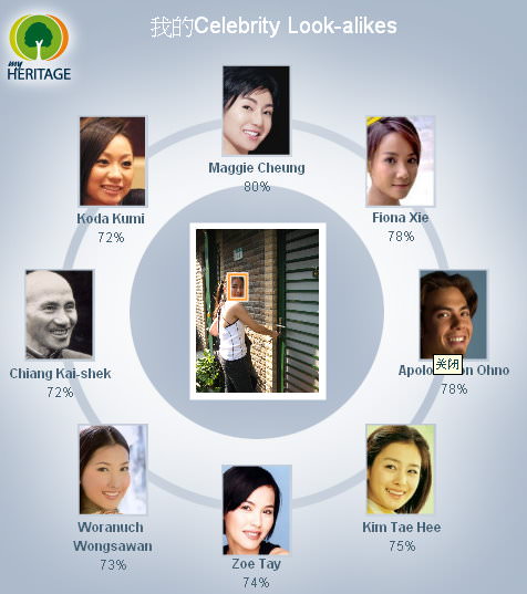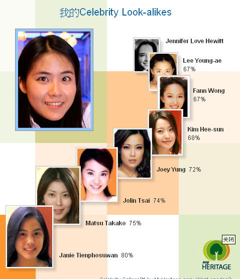 各位眼尖的看官們,不知道你們有沒有發現,其中有兩張重複比對到同一個人—國父 孫中山先生,所以算是可信度較高囉!天哪!我們該不會有什麼關係吧!呵呵!比較慘的是綁了頭髮、戴了眼鏡之後,比對出來男生的比例增加了…我終於該好好相信為什麼小朋友都說我戴眼鏡很醜了…但令人安慰的是,比對出來的至少都是美女…