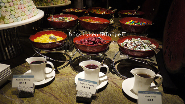 冰淇淋區有很多小物可以添加,有:MM巧克力、小熊軟糖、聰明豆、石頭巧克力、蔓越莓果乾等等,讓您的冰淇淋更繽紛。當時一旁有一位阿桑問我:石頭巧克力是什麼東西?我說:是巧克力。她說好特別,抓了一塊起來吃直說很甜,是小孩子喜歡的。我說:喔!對呀!我記得小時候還特別去大賣場買石頭巧克力來吃,那時候真的很流行。