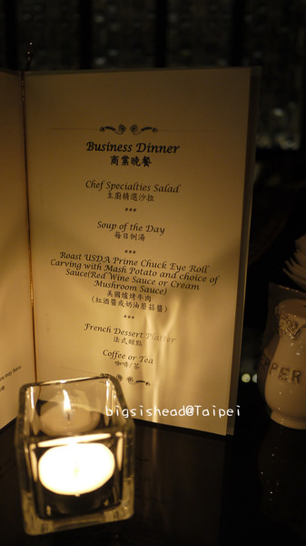 商業晚餐的內容有:主廚精選沙拉、每日例湯、美國爐烤牛肉(吃到飽)、法式甜點、咖啡/茶,原來茶餐廳吃到飽的意思只有牛排及咖啡/茶,其他的份量都是固定不能挑選的,跟我們一開始的想像不太一樣。原本以為份量可能會很少,怕會吃不飽,沒想到,還是吃到超撐,食物都滿到喉嚨了…