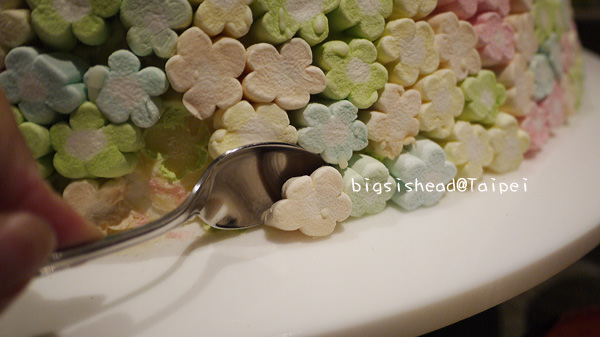 後來在一位客人的指導下,才知道原來這是要特別用湯匙挖下棉花糖,因為已經用水黏住才能這麼硬挺呀!