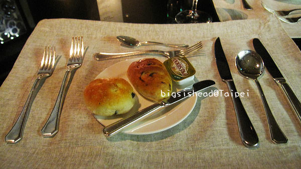 首先上場的是沒在菜單上的麵包,我吃過星級飯店的這種小麵包到目前為止都很好吃,在主菜還沒上菜前都會想要續點,不過,還是理智點,留點肚子塞主食吧!