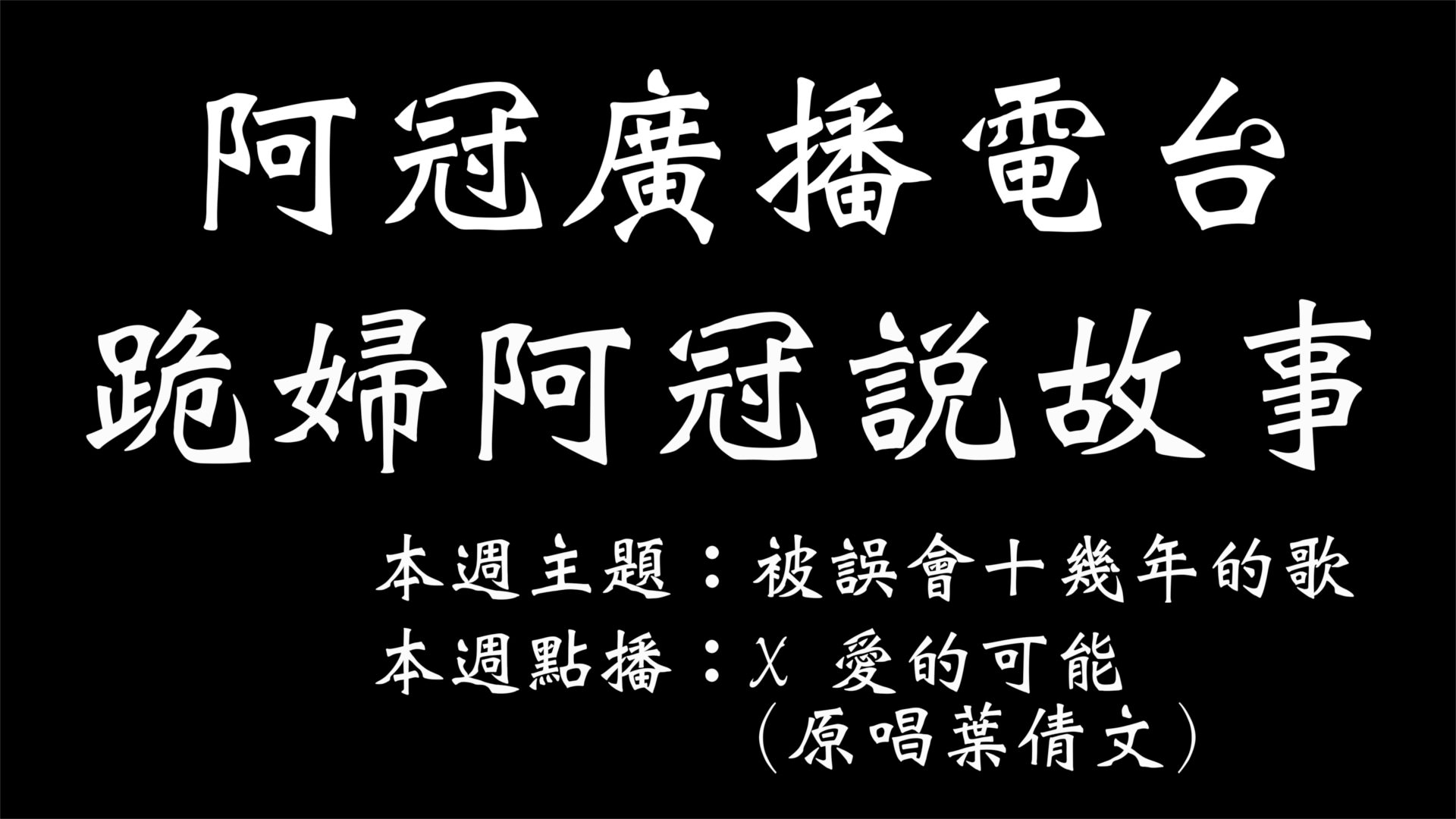 「說你的故事說我的故事說他的故事說我們的故事,歡迎收聽跪婦阿冠說故事。」…