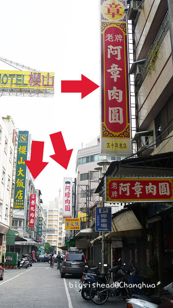 在剛剛那路口往九支刀老家那條長安街上,還可以看到這家阿章肉圓店,這是到彰化第一個晚上拍的照片,我們吃完阿璋肉圓之後去吃了陽春麵,所以這家吃不下,也想要趕快去房間check-in,不然太晚進房也不會退錢呀,這些東西就明天退房後再來吃吧!