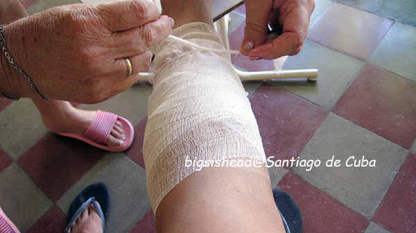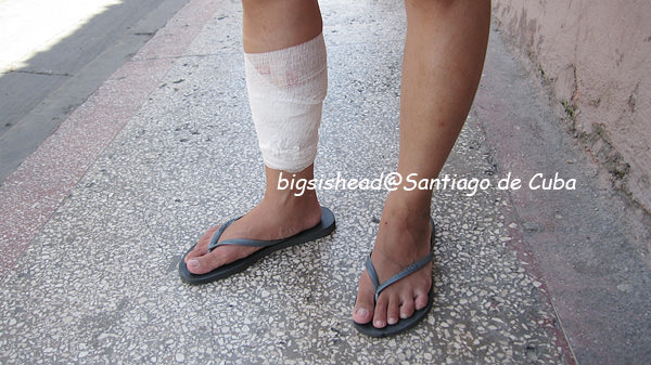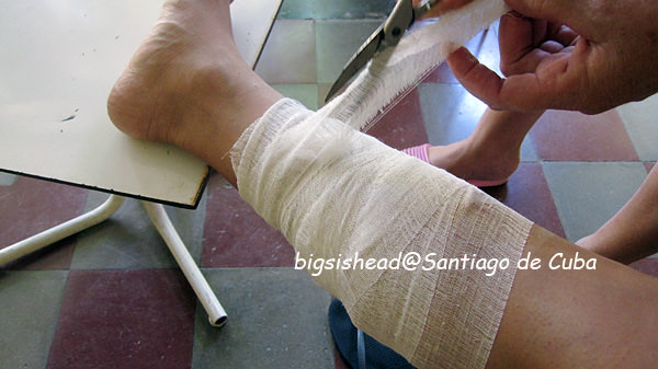 Vilma還怕我的紗布掉在半路,特地拿了”一隻“襪子給我,在30幾度的高溫下穿這樣已經熱斃了,還要忍受他人異樣的眼光,但是老人家的心意,還是乖乖穿著出門吧!