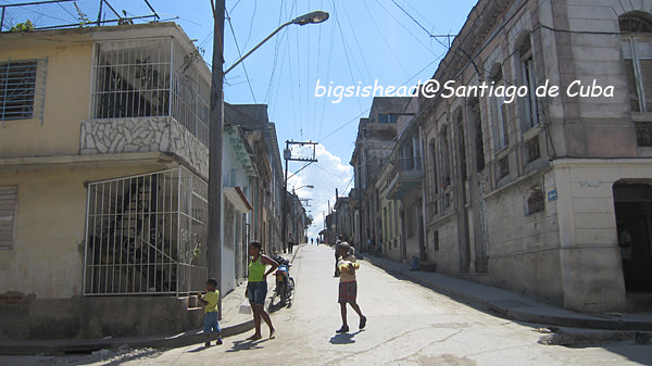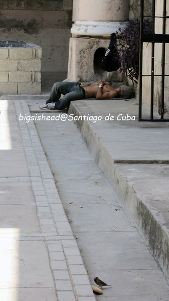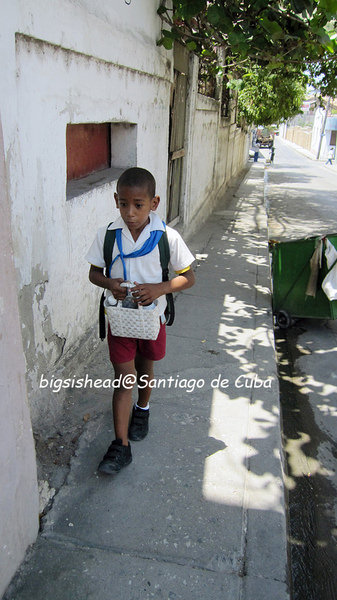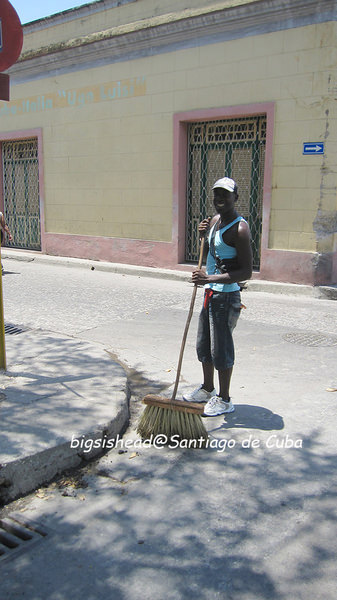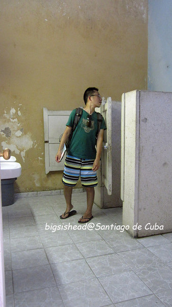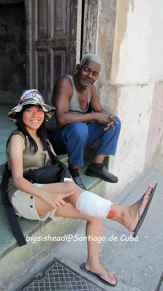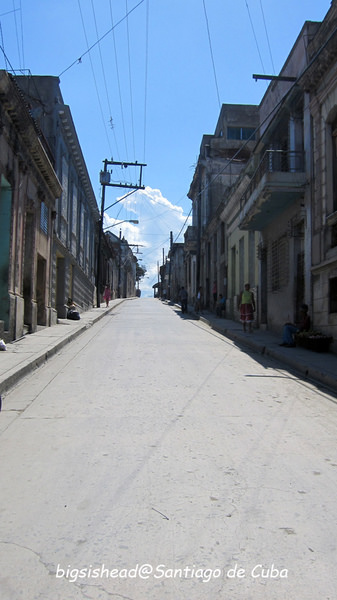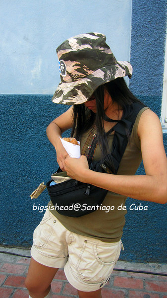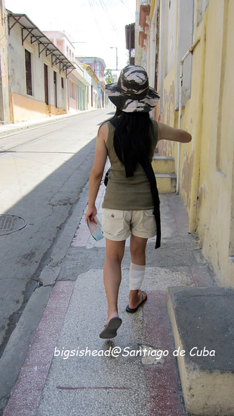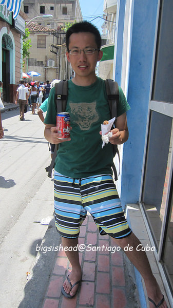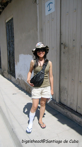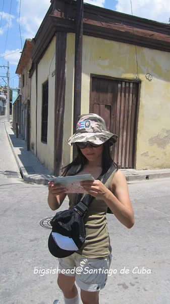 Santiago de Cuba緯度比Habana低很多(大約北緯20度),天氣好到爆,每天都豔陽高照,再加上建築設計的關係,正中午的路上幾乎沒有什麼可以遮陽的地方。不過,已經在古巴混一個禮拜的我們,也練就不用擦防曬就可以直接出門的功夫(其實是擦防曬流汗不舒服也懶),但我比較搞剛一點,會戴帽子與墨鏡,老潘都直接出門。