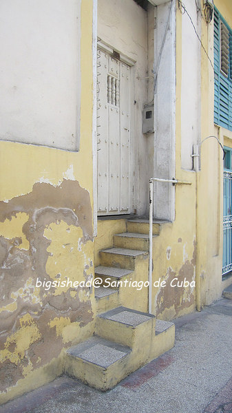 門口跟馬路的落差需要靠樓梯來補強,成為Santiago de Cuba常見的房屋設計