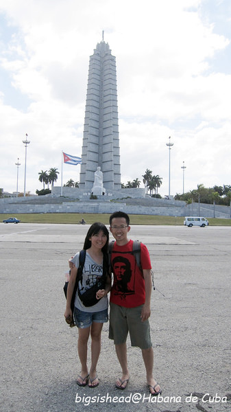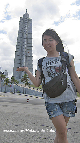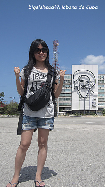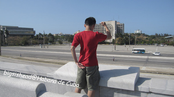 一到革命紀念廣場就是一直拍拍拍呀!之前在書上都只有看Che Guevara在內政部大樓上的大鋼骨雕塑,這次連大鬍子—Camilo也來搶版面啦!