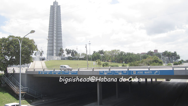 前方像霜淇淋的就是革命紀念廣場前的Jose Marti(馬帝紀念塔),下方是通往Jose Marti機場的地下道。