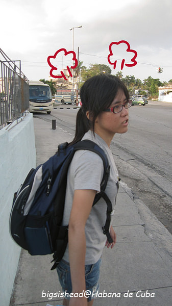 一到路口就看到可以回到我們家的P-4,可是我們根本不知道公車站牌在哪(古巴很多地方沒有公車站牌),我們要賭說是在十字路口前還是後,如果在前,我們跑到後面,到時又要追公車;如果我們先跑到前面,結果公車站牌在後面,到時候又要回頭追公車,在對街猶豫判斷之下,等確定公車停站的地方,已經來不及了,因為我不能跑,不然照平常的速度,我一定可以搭上車的!!!