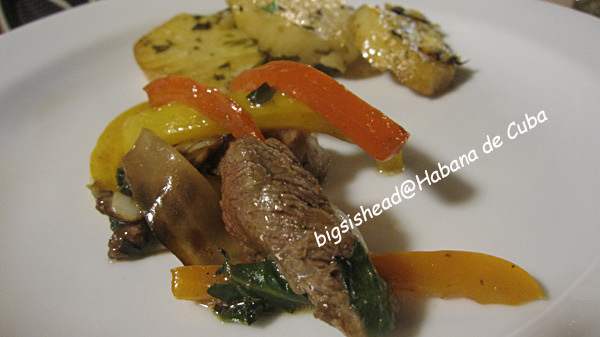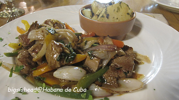 因為看書上介紹,所以我們問服務生書上的餐點名稱是?現在還有提供嗎?他說那叫做:Lomo especial 12CUC,而且他還很有禮貌的問我能不能看書上的介紹,我說當然可以,我發現他們對於自己出現在書上都很好奇跟興奮(那當然囉!我自己也會這樣,只是沒這機會罷了…)。而且這裡幾乎只有外國觀光客才吃得起,也只有外國人才知道這間(因為書上會介紹),所以服務生多半會說些許的英文。