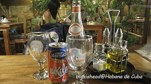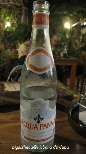 服務生先問我們要不要drink?我看了菜單飲料都超貴,就來water吧!第一次在古巴吃大餐,原來,water也要錢,ACQUA NAT PANNA(2.5CUC),在美國及台灣的餐廳喝水不用錢,古巴要買罐裝水,還給我來這種高檔的,我可以請服務生只來煮過的開水就行嗎?(好啦!就當被騙一次學一次乖…)