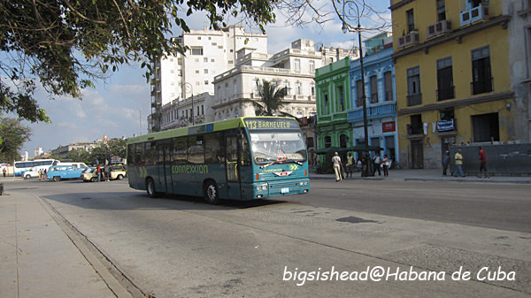 看到FROMMER’S書上介紹的一家餐廳在MIRAMAR區域(Calle 48 No 1131. e/13 y 15, Playa, Ciudad de la Habana),比我們住的VEDADO區域還要再進去,但是我們只認識27號公車,再加上之前詢問買胃腸藥的過程中,我記得P-5可以過橋到MIRAMAR區,所以我們搭了27號公車到copelilla國營冰淇淋站轉車(1peso),接著搭P-5公車到MIRAMAR(1peso),可是車子越開越遠,離我們的目標越來越遠,而且這邊地上的”路標”,跟VEDADO區比起來根本模糊不清,都看不清楚,眼看這樣下去我們不知道會被載到哪去,所以我們到AVE31 y Calle76交界處下車。