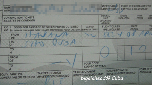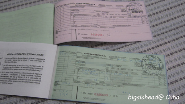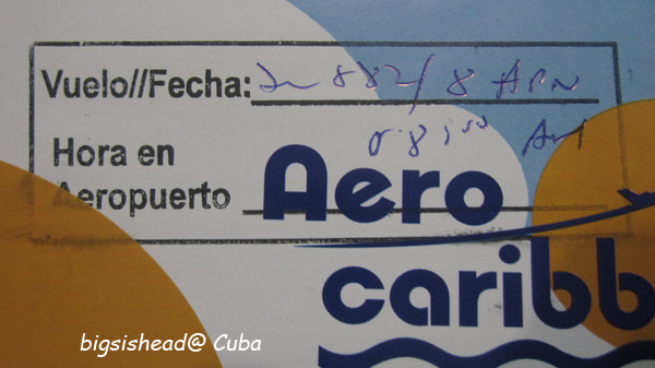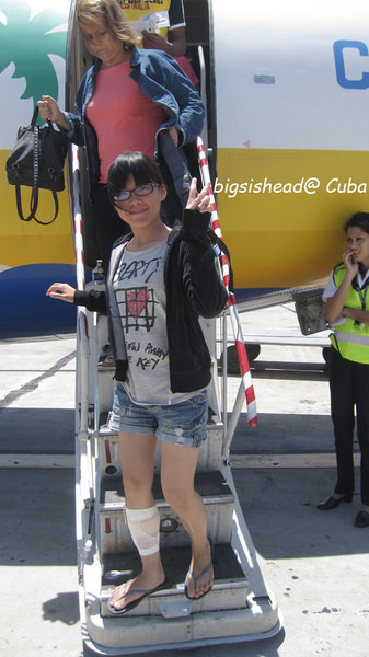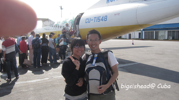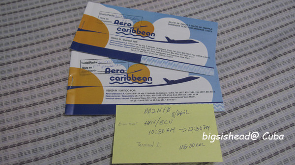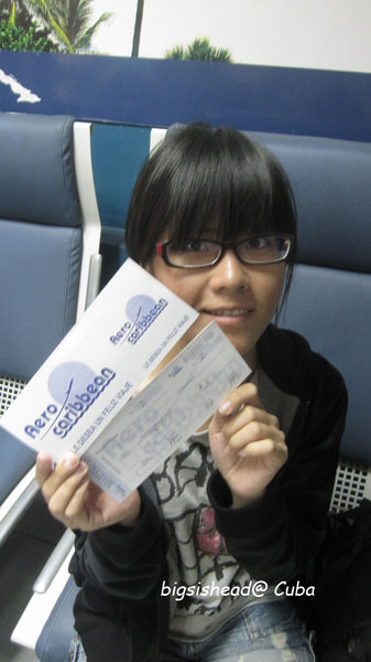 「雖然我們沒買到Cubana de Aviacion航空公司的機票,但Horacio說:『Aero caribbean也是Cubana de Aviacion的子空司(其實說穿了,古巴哪個公司不是國家的?呵呵!),雖然飛機很小差不多一台巴士的乘客數而已,看起來很遜很陽春,好像危險,即便坐上去覺得飛機很晃很恐怖,都不用擔心,事實上很安全,古巴發生空難是20年前的事…(以上阿冠翻譯)』