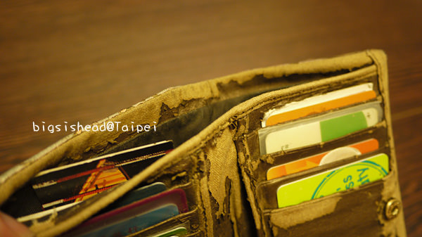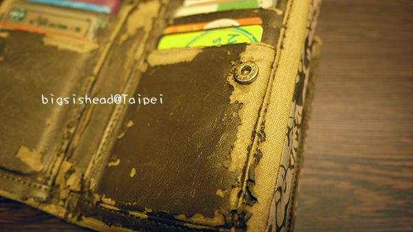你看舊錢包已經褪色成這樣,可是因為實在是內容量大又好用,所以捨不得丟掉…