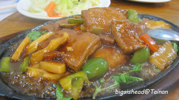 冠爸吃素,依照慣例青菜都點素的,高麗菜一上桌冠爸吃到蒜頭,最後店家很有誠意招待那盤高麗菜;但今天的鐵板豆腐好像忘了勾芡=.=