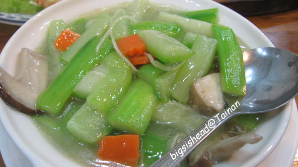 回台南只要有機會就想來吃一下渝苑,蔬菜類都是做素的,與冠爸共享,為了吃肥肉,我跟老潘還點一盤蒜泥白肉,舅舅點了翡翠湯,但我從小就不喜歡喝這道湯。