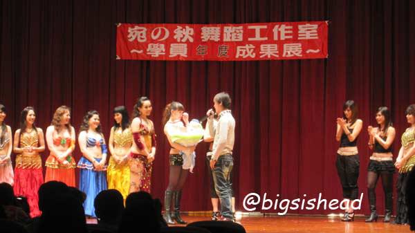 不是我在誇張,小朱好厲害呀!而且跳得很有韻味,律動感比一些資深前輩來得棒,因為有人實在把肚皮舞跳得跟國標舞沒兩樣;令我印象深刻的是一位12歲的小妹妹,我覺得他跳得很好,但因為還沒發育又太瘦,再過一段時日應該會更有韻味;有一位大約幼稚園或國小的小羅莉,肚子就很有料,也很會扭,把大家的焦點都不自覺移過去啦!還有一些女生也是跳得很好,但是太瘦肚子沒有肉,看起來就少了點ㄉㄨㄞㄉㄨㄞ感,可是大家真的都很棒喔!因為我就沒這勇氣拿我的肚子在舞台上扭來扭去。