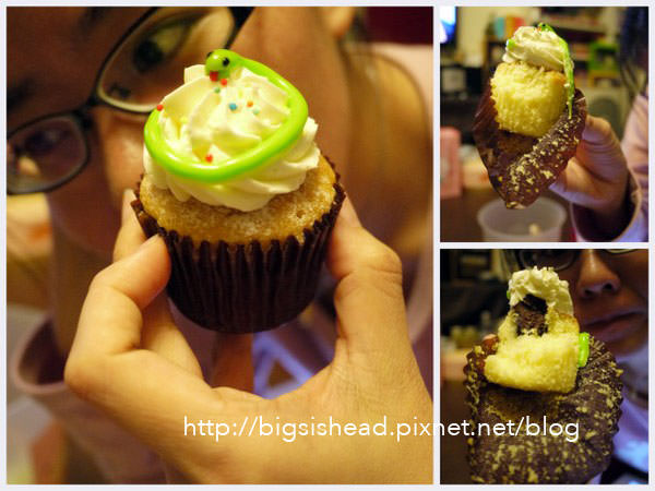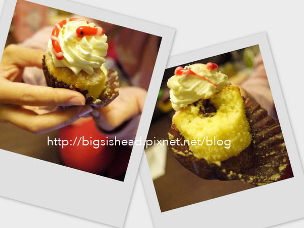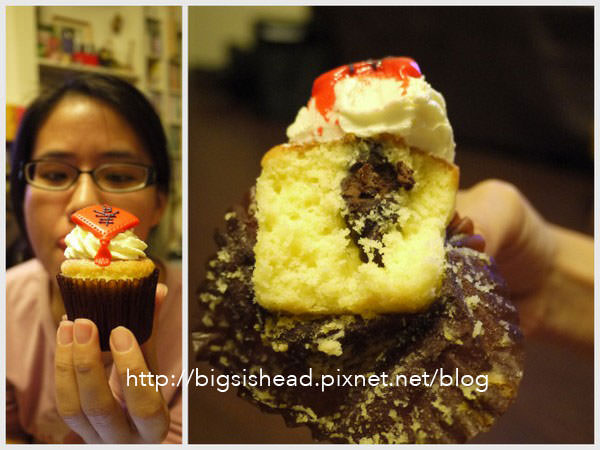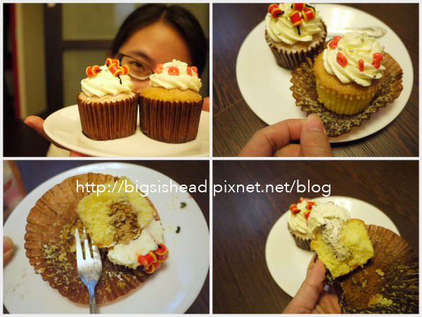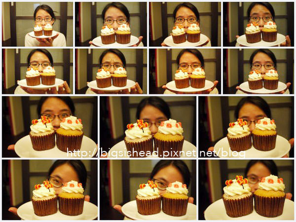 當晚我迫不及待拿出杯子蛋糕來當點心享用啦!一次來兩顆!因為拍太多張照片,乾脆就來個連拍合成照。