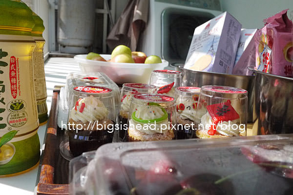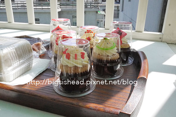 好巧,在拜拜前幾天,老潘跟阿冠去做身體時,店家發現這個月是我們兩個的生日月,特地買了兩個杯子蛋糕送我們,老潘咬了一口不合胃口,就推還給我叫我自己啃光。