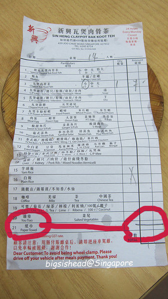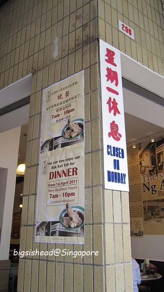 要離開新加坡的前一個晚上,我們再度光臨這家肉骨茶。原本是前兩天就要吃,但那天是星期一,走到門口才發現沒營業,因為我們忘記星期一公休啦!所以隔天(星期二)也就是要離開新加坡的前一個晚上,我們一定要再來喝上個幾碗才行!