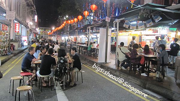 牛車水的史密街晚上開始會有攤販出來營業,桌椅也就直接擺在馬路及人行道上,只要是點這邊攤販的東西,都可以在這邊用餐,很像我們的路邊美食街這樣。