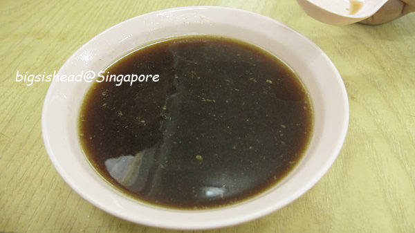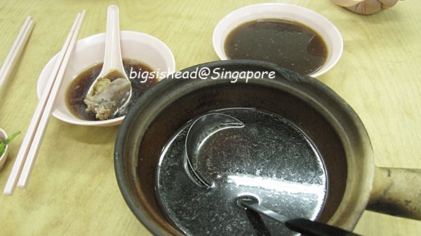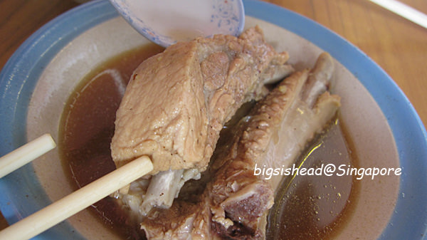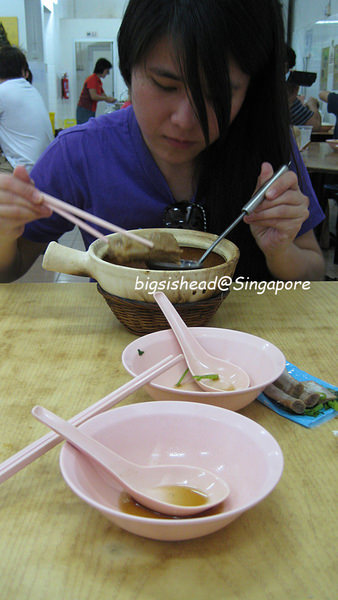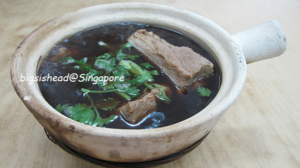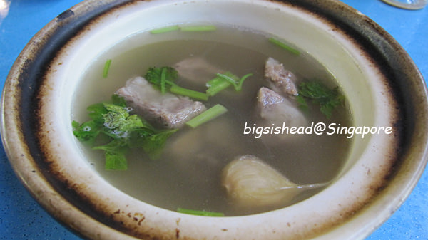 我喜歡帶點油花的肉骨,他不敢吃太軟的口感,所以我點藍色那碗肋骨(SGD7.5),她點咖啡色這碗排骨(SGD5.5)。這家的湯頭雖然顏色沒有第一家(新興瓦煲)來的深,但也是走黑胡椒路線,喝起來也是不錯喝,但是後勁沒有新興瓦煲來的令人回味。