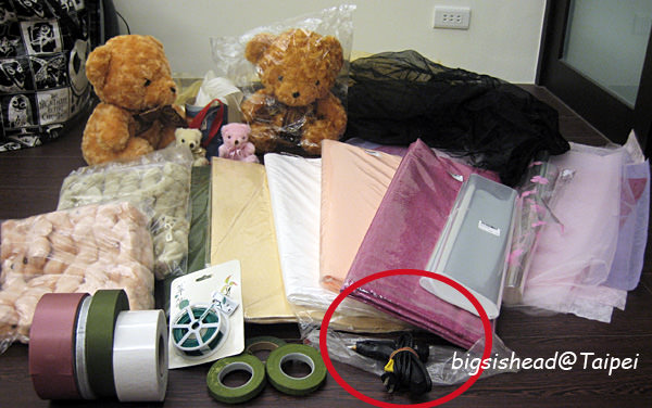 紅色圈圈裡的小熱熔槍是去年阿冠跟婚顧同學們在校門口兜售畢業花束的時候跟冠爸借來用的,口徑0.1公分。