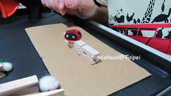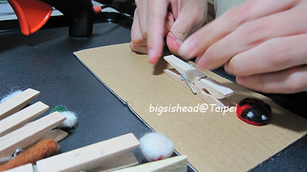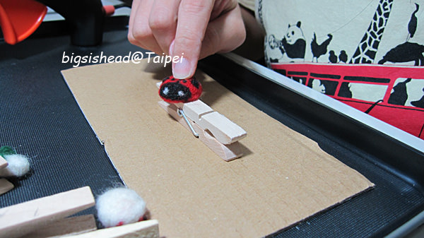 將小瓢蟲輕壓在木夾上,確定瓢蟲固定在您想要的位置上。