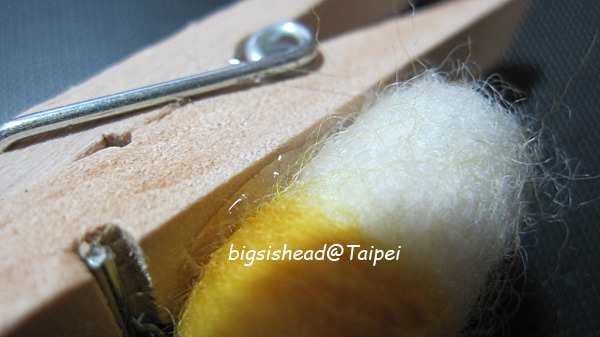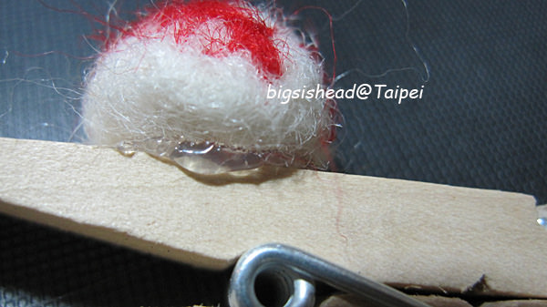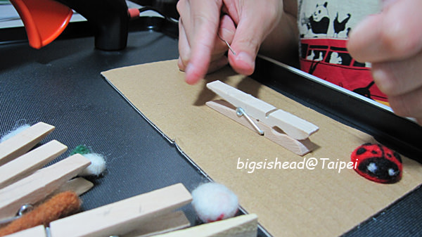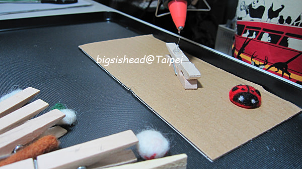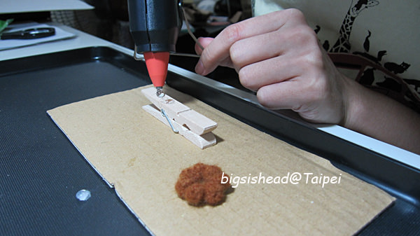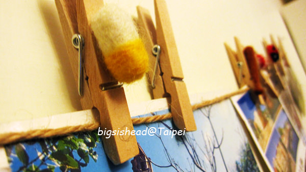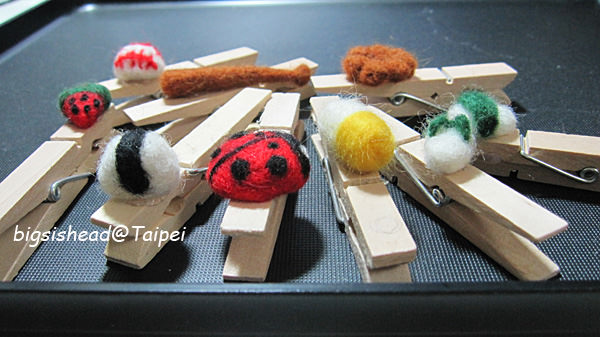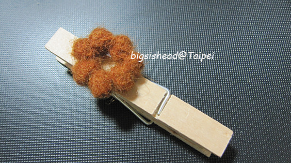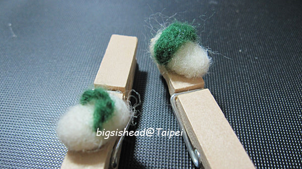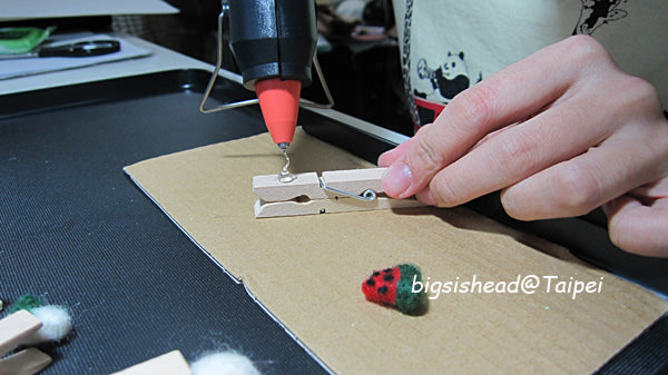 已經做好一些時日的羊毛氈玩意兒及買了很久的木夾子,一直擱在一旁就是因為我當時手邊缺了將兩者結合的東西。