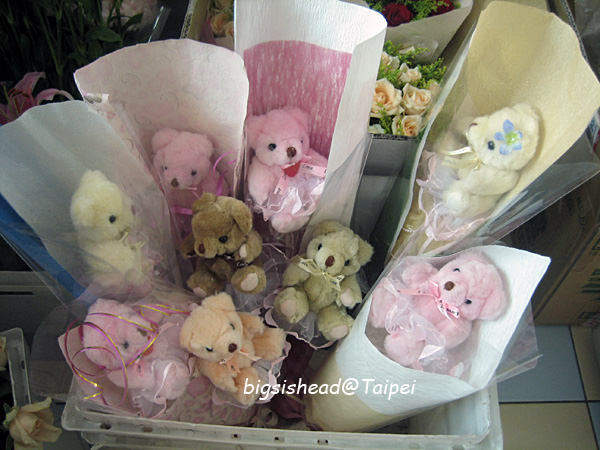 起了大早一起到花市去採購並跟布置老師買一些小熊