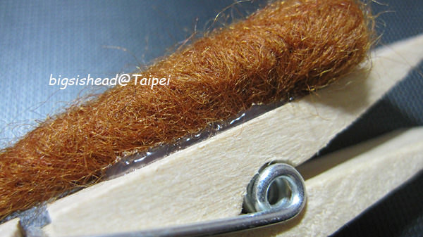 趁熱槍的時間,把羊毛氈放在木夾上試擺看看。