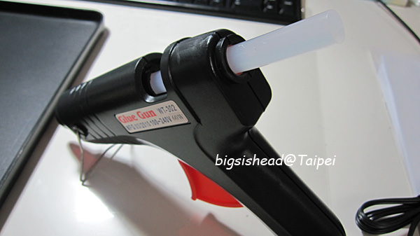 當時我還沒有熱熔槍,就跟冠爸借了一支小熱熔槍來應急一下!