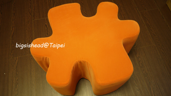 這是我的拼圖椅凳完整樣貌啦!這系列有粉紅、亮黃、淺綠及橘色,因為我家的家具都以黑白顏色為主,接近地面的選黑色、櫃子類都是白色、點綴飾品就選紅色,所以椅子清一色都是紅色,而阿給懶人沙發有一面是橘色,所以我選擇橘色來互相呼應一下。
