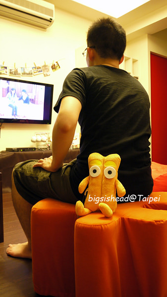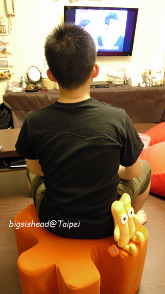 再來變回腳凳的角色,坐在腳凳上看電視的話,頭可以不用抬那麼高。雖然我們平常坐地上或懶人沙發看電視的角度也覺得還好,不會累,但如果習慣坐椅子或沙發的郎客,可能還是會比較習慣拼圖腳凳的高度。