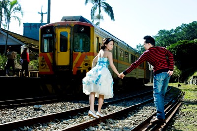 昨天因為我要寫網誌, 叫老潘來挑一張在婚紗公司拍的照片當插圖, 我們再度瀏覽了一次照片, 老潘說:「我們的婚紗照真的看起來跟別人的感覺不一樣耶!不錯!」 我真的超開心,感覺心血沒有白費了… 為了慶賀這句聽起來奇謀子很好的話, 再送一張照片好了, 這次我自己挑。 每一張都覺得很有意思, 正在思考要不要保留到婚禮當天再公開好了……