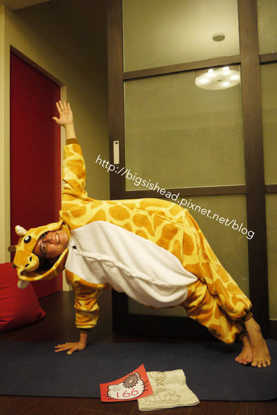 20130205阿冠入手了一件長頸鹿睡衣,要穿之前當然要先進行過水儀式(話說,從小在家庭代工廠長大的小孩衣服買回來絕對會先洗過才穿),曬在陽台時,我有自己模擬鄰居看到的台詞:這家是在兼差當馬戲團成員嗎?