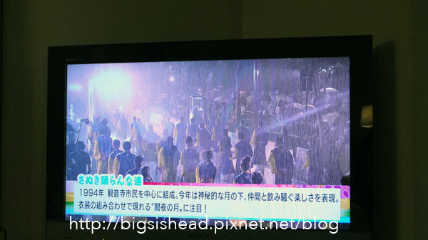 抵達四萬十川的飯店趕緊打開電視看看目前夏夜祭的狀況,才發現原來高知是正在下雨!心裡雖然慶幸著還好我們今天走中村及四萬十川的行程,但也覺得替舞者們感到很可惜,因為下雨天多少會影響到表演的情緒,也會讓觀眾看得不夠過癮呀!