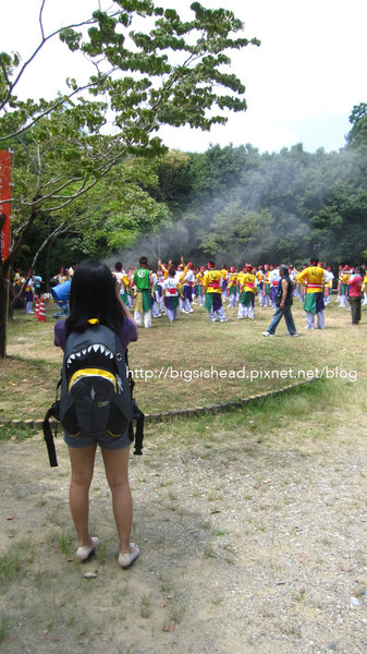 原來,現場備有灑水器,炎熱的夏天,要在外頭表演一整天的舞者們,需要適時來個解暑的秘密武器呀!這玩意兒就像台灣夏天一些咖啡店或飲料店門口會噴灑的消暑法寶,不過阿冠一直懷疑那些水是打哪來的,我經過的時候基本上一定會閉嘴巴的快速通過…