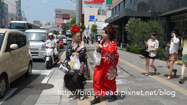 夏夜祭期間,也常常可見舞者穿著表演的服裝趴趴走,有時會有穿越時空的錯覺耶!