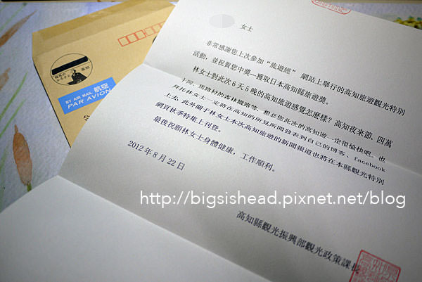 跟小西及恆石先生碰面後,老潘跟他們交換了名片,沒想到回國後還收到由高知縣觀光振興部觀光政策課長發出的感謝函,信封的封面還用繁體中文寫,真的很有誠意,很感動,真的真的希望未來還有機會而且一定要再到高知!